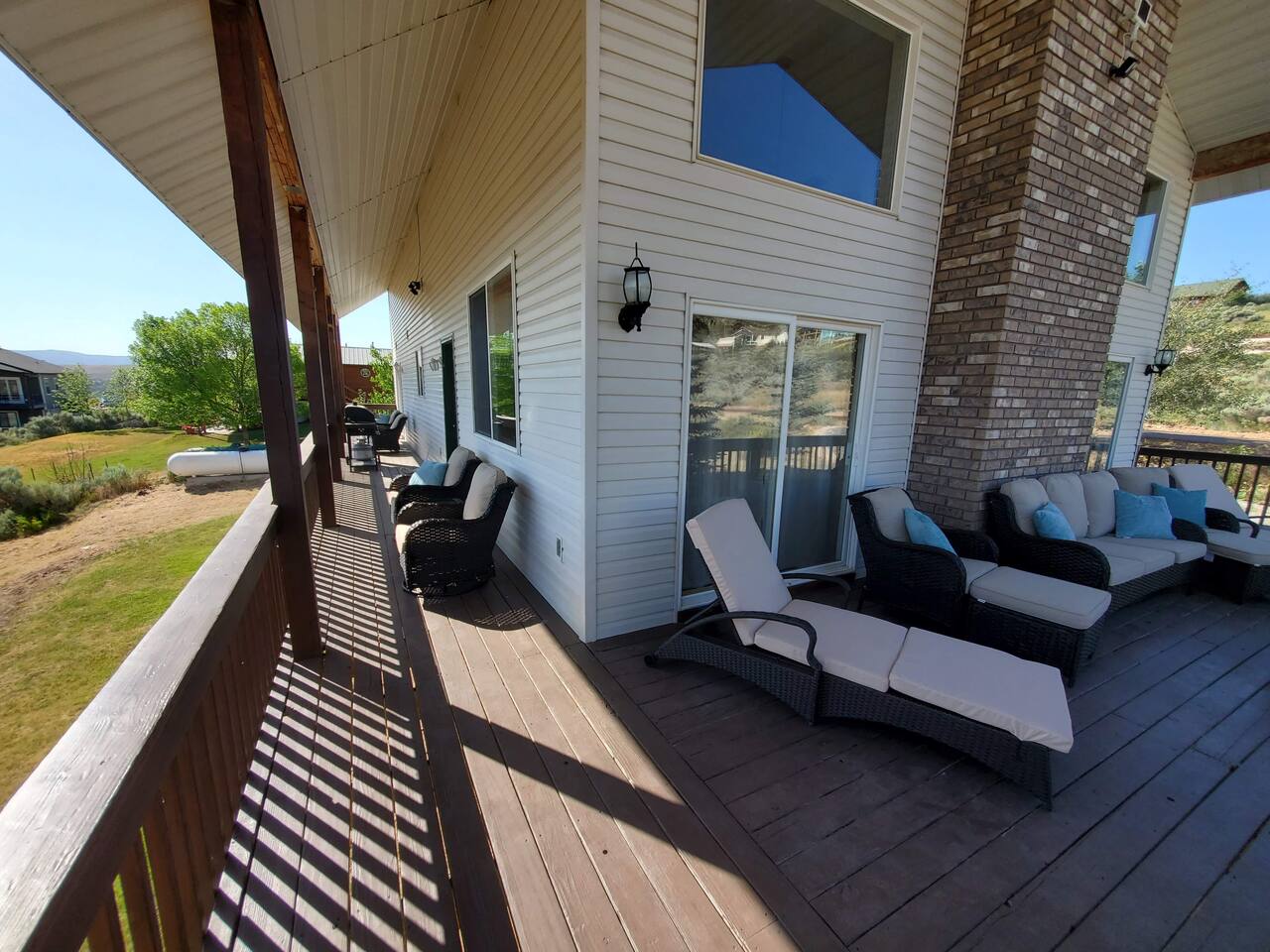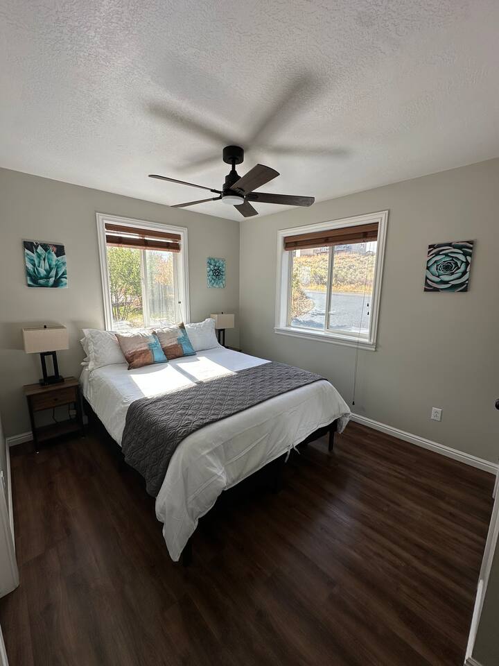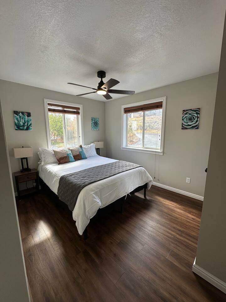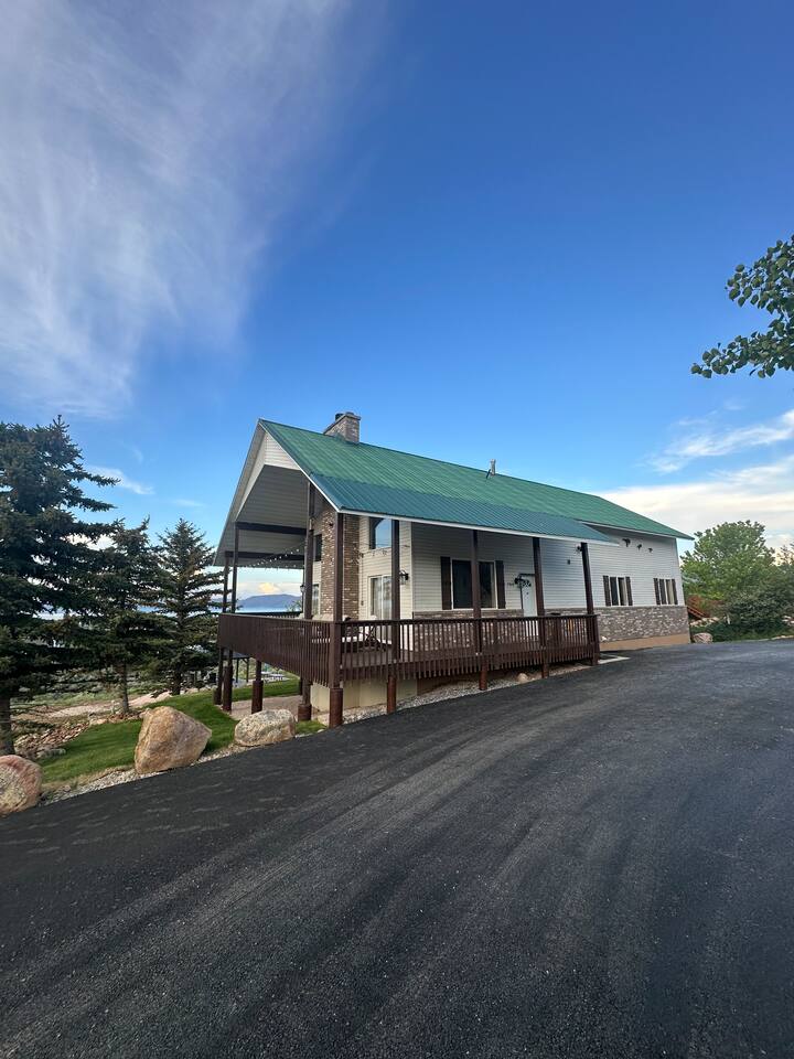 Perfect for a family holiday or group getaway during any season, 'Blue Water Overlook' provides easy access to Bear Lake, Beaver Mountain, local rentals, restaurants, shops, and more. There's also a great chance you will see wildlife (Moose, Elk, Deer, Turkey Rabbit, Squirrel, etc.). Please be respectful, do not feed them, and enjoy them from a distance. Bedroom 1 : Queen bed | Bedroom 2: Queen bed | Bedroom 3: Queen Bed | Bedroom 4: Queen bed | Bedroom 5: Queen bed | Loft 3:Twin Bunk Beds with 3 trundle beds| OUTDOOR LIVING: Covered deck, patio furnishings, grill, yard, stunning water & mountain views KITCHEN: Fully equipped, stainless steel appliances, large island counter, breakfast bar seating, coffee maker, Crock-Pot, knife set, cookware, dishware, glassware, silverware MAIN FEATURES: 1 living room, Smart TVs, fireplace with electric log, wall-to-wall windows, dining table, 4 shower/tub combos GENERAL: Free WiFi, central heat & A/C, ceiling fans, iron & ironing board, toiletries, linens, towels, keyless entry PARKING: Driveway (5 vehicles)