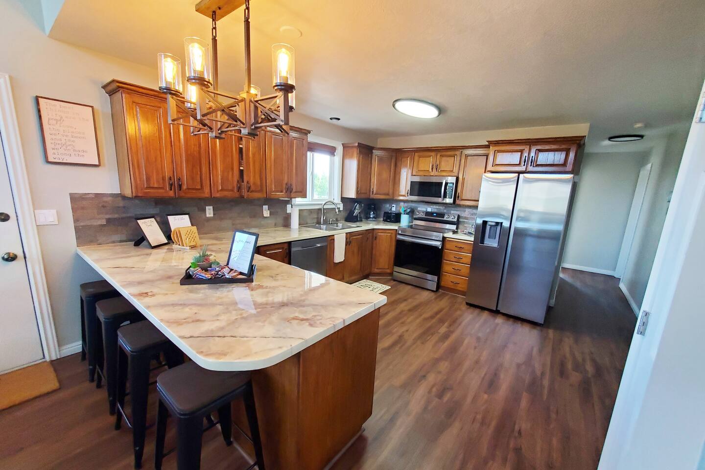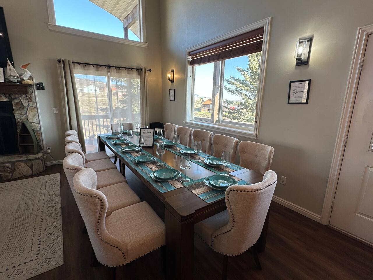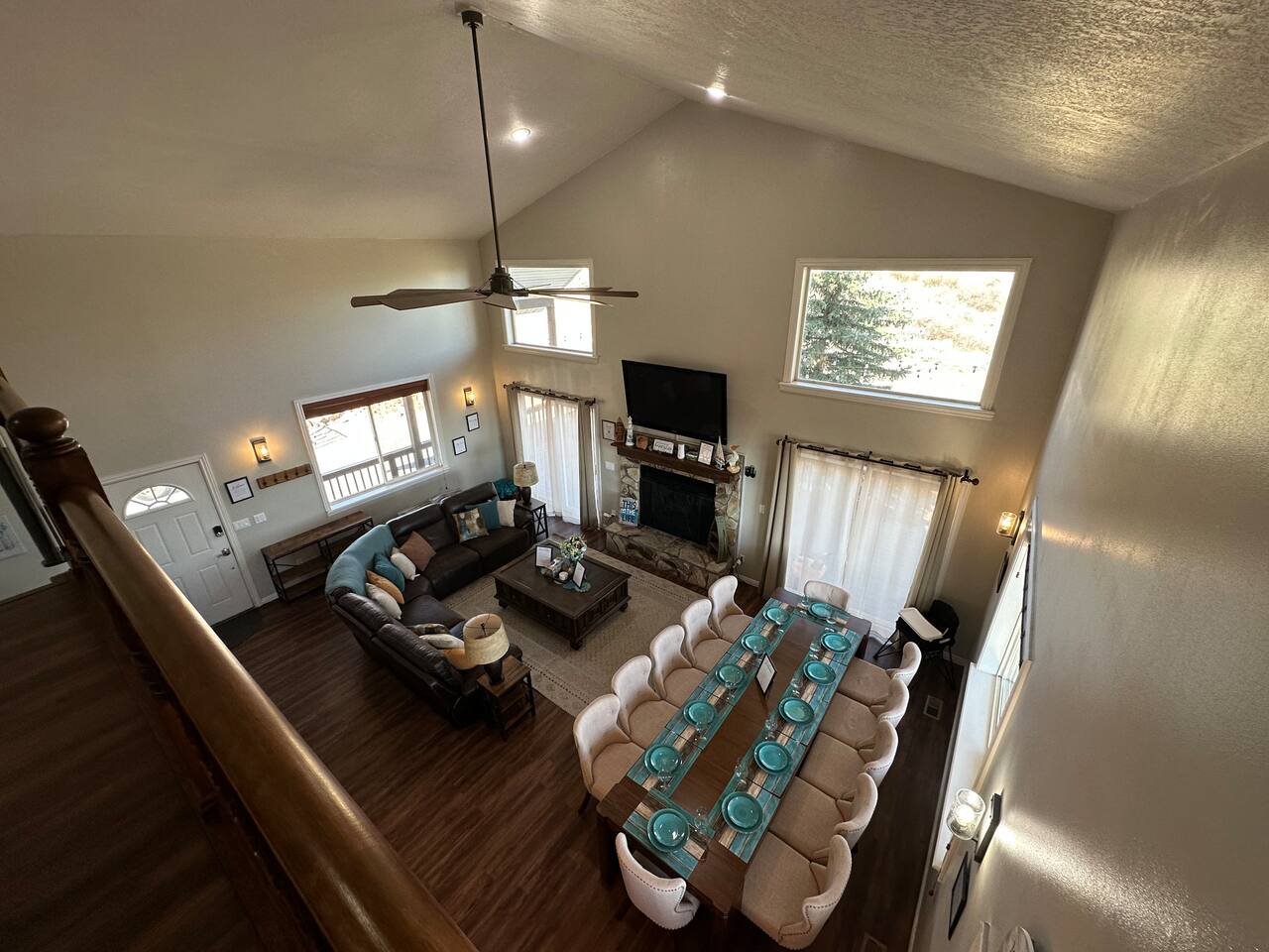Perfect for a family holiday or group getaway during any season, 'Blue Water Overlook' provides easy access to Bear Lake, Beaver Mountain, local rentals, restaurants, shops, and more. There's also a great chance you will see wildlife (Moose, Elk, Deer, Turkey Rabbit, Squirrel, etc.). Please be respectful, do not feed them, and enjoy them from a distance. Bedroom 1 : Queen bed | Bedroom 2: Queen bed | Bedroom 3: Queen Bed | Bedroom 4: Queen bed | Bedroom 5: Queen bed | Loft 3:Twin Bunk Beds with 3 trundle beds| OUTDOOR LIVING: Covered deck, patio furnishings, grill, yard, stunning water & mountain views KITCHEN: Fully equipped, stainless steel appliances, large island counter, breakfast bar seating, coffee maker, Crock-Pot, knife set, cookware, dishware, glassware, silverware MAIN FEATURES: 1 living room, Smart TVs, fireplace with electric log, wall-to-wall windows, dining table, 4 shower/tub combos GENERAL: Free WiFi, central heat & A/C, ceiling fans, iron & ironing board, toiletries, linens, towels, keyless entry PARKING: Driveway (5 vehicles)