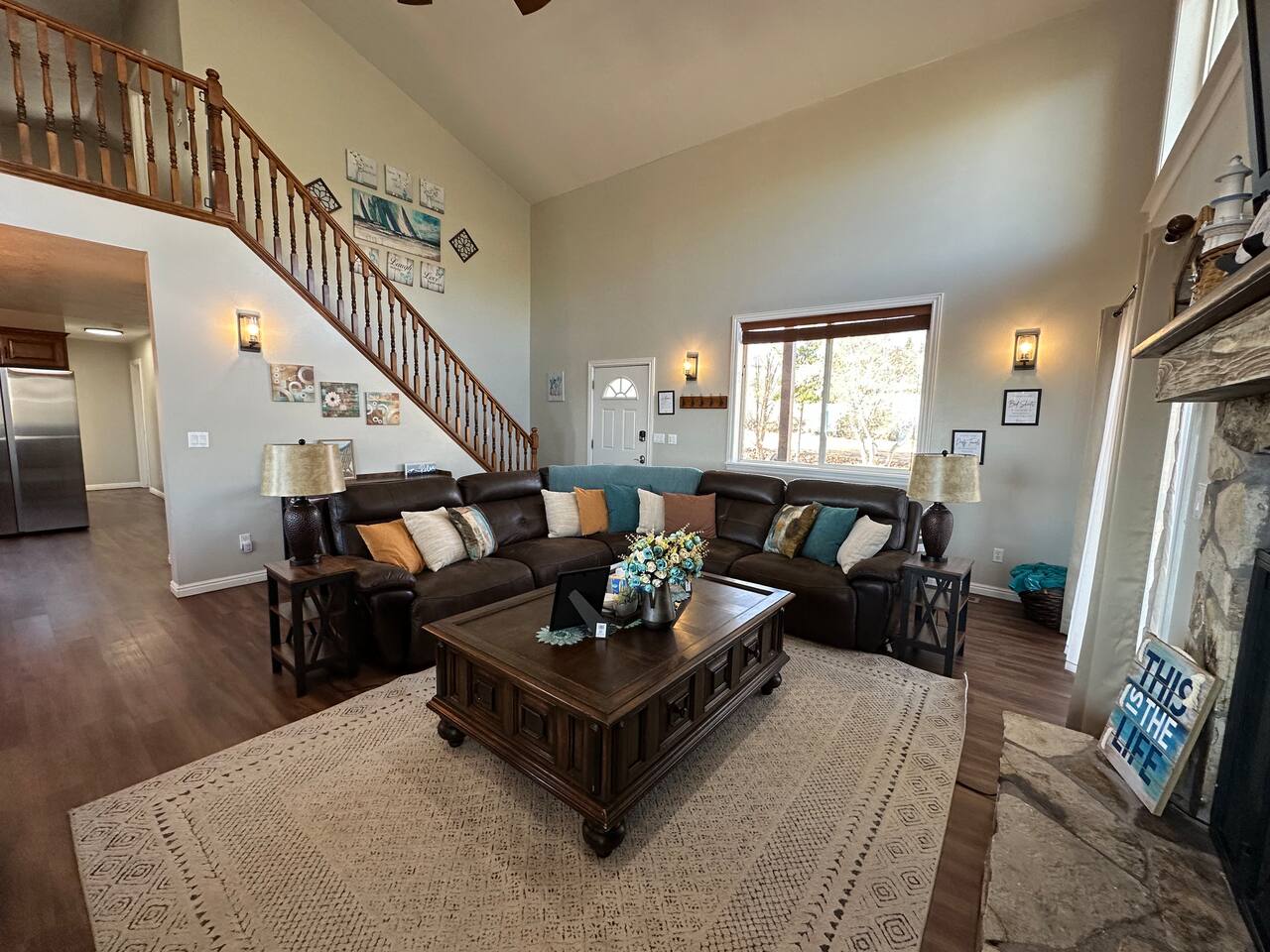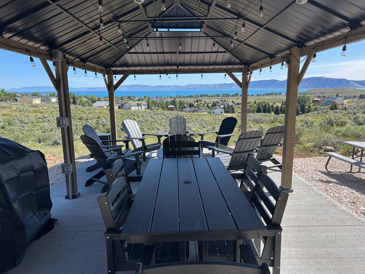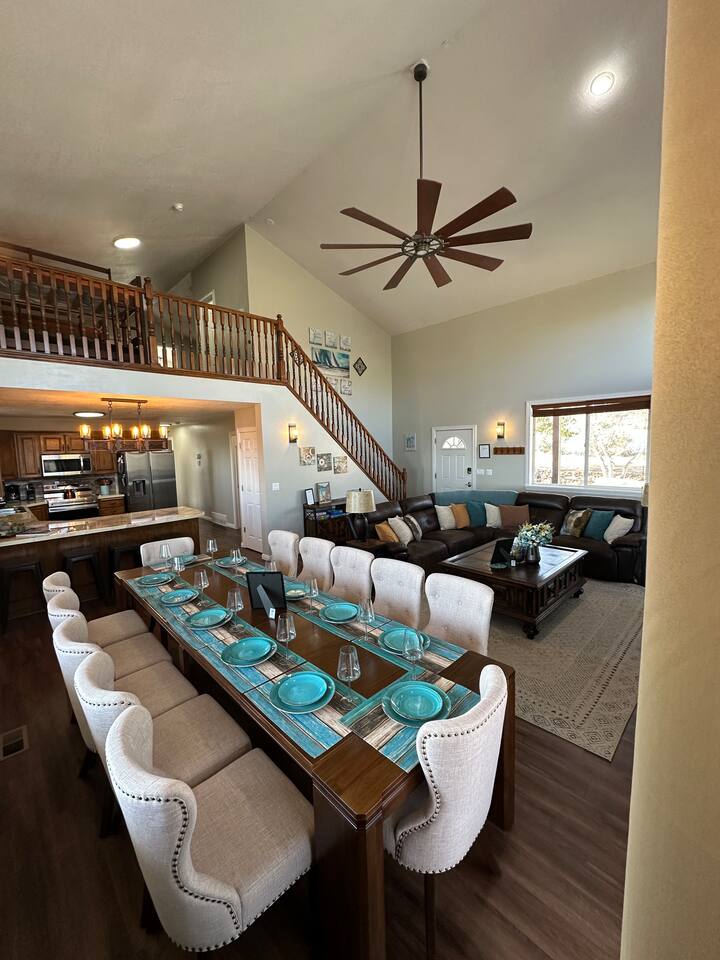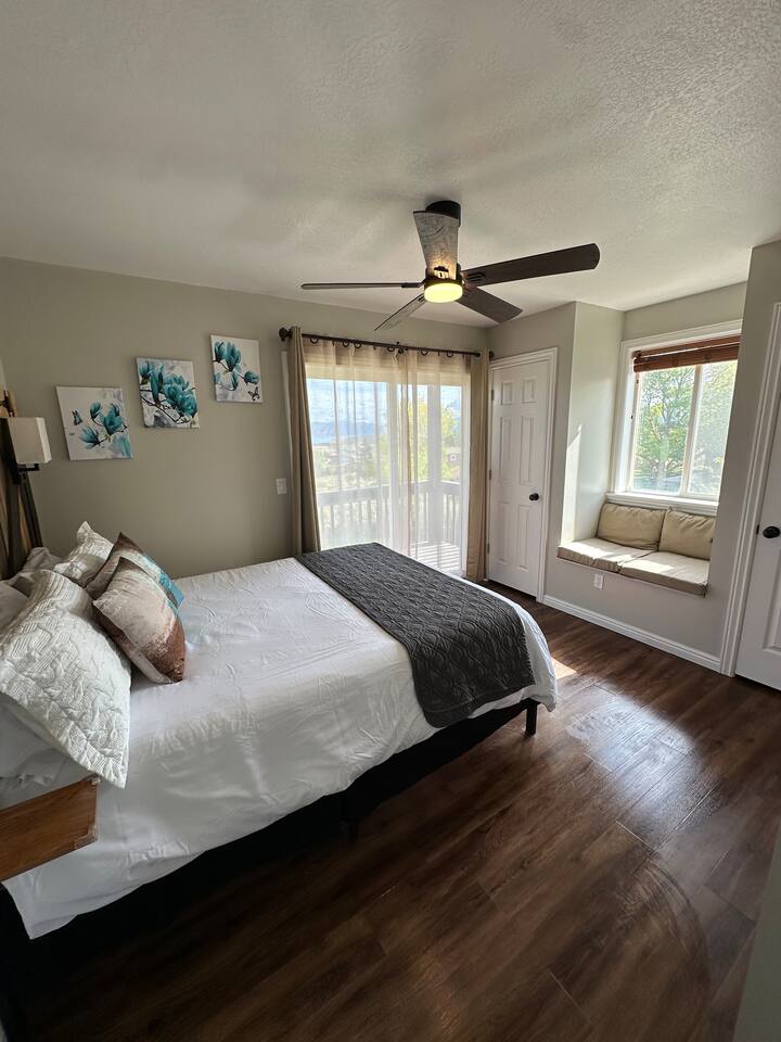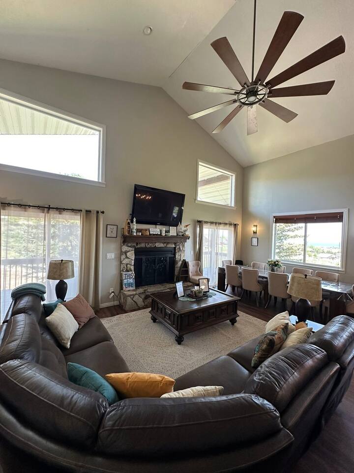 Escape to our Bear Lake family retreat with breathtaking lake & mountain views, a private playground, and lawn for games. Designed for family reunions (sleeps 19), it features main-floor suites with private baths, a game room, wraparound deck with BBQ, and a cozy gazebo with fire pit. Enjoy open living, a stocked kitchen, and Ideal Beach Resort pools and private beach. The perfect place to gather and create lasting family memories.